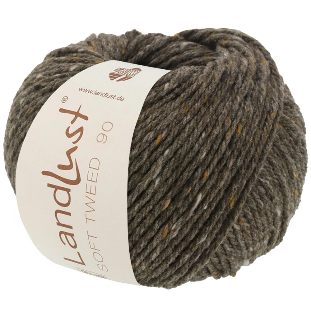 Lana Grossa Landlust Soft Tweed 90 er et flot tweedgarn med et pænt farvespil, der stammer fra de forskelligfarvede tweed-nister i garnets struktur. Garnet er lavet af 100% ren ny merinould, akkurat som søstergarnet Landlust Soft Tweed 180, der adskiller sig ved at være lidt tyndere.