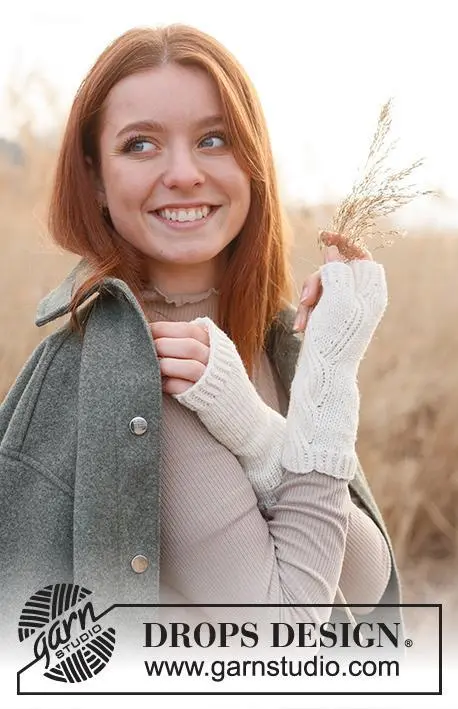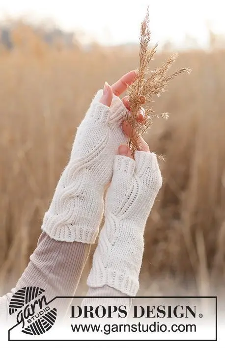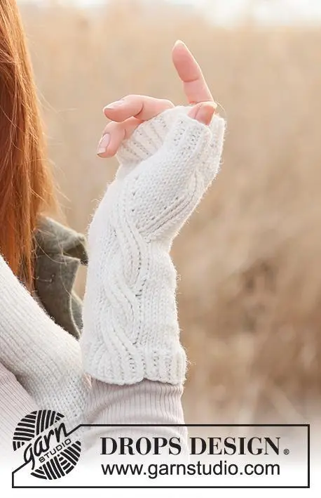 Strikkede pulsvanter med snoninger i DROPS Merino Extra Fine.