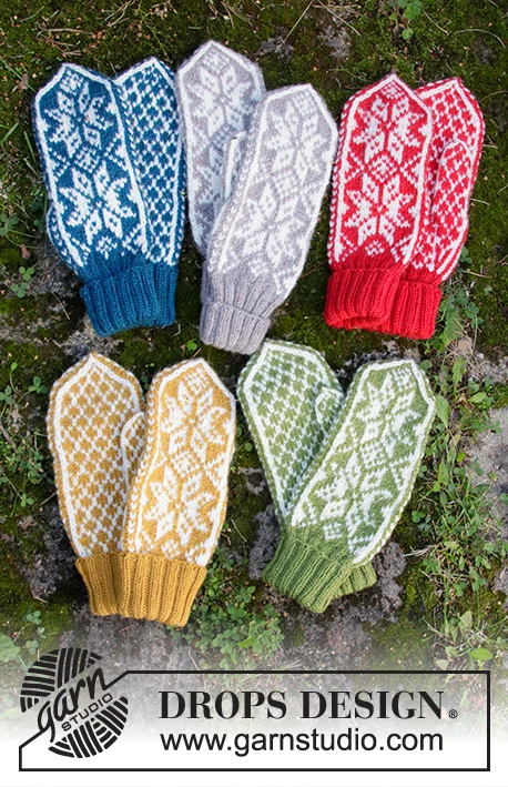 Strikkede vanter til jul med nordisk mønster i DROPS Karisma. Tema: Jul.