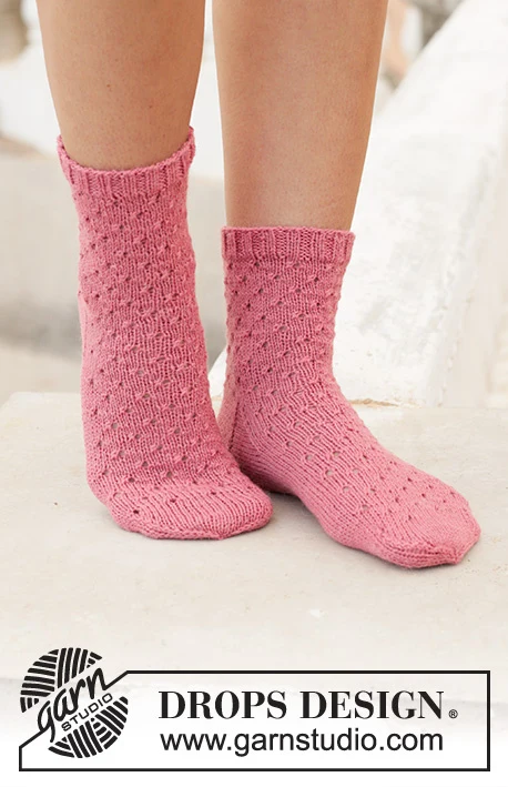 Strikkede sokker i DROPS Nord. Arbejdet strikkes ovenfra og ned med enkelt hulmønster. Størrelse 35 - 43.