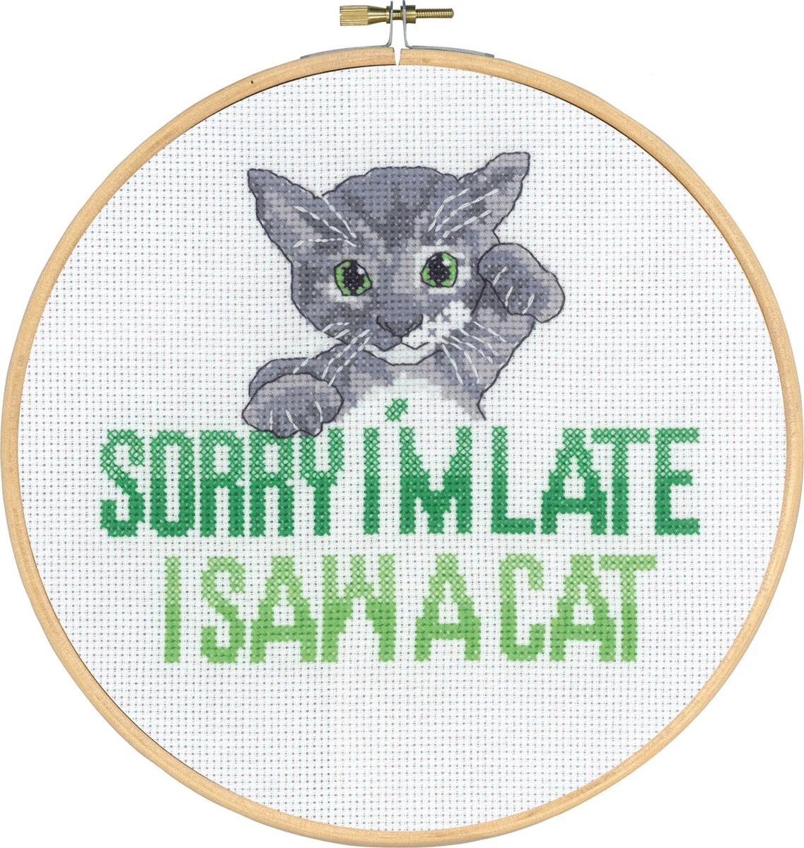 Med "Sorry I'm late Kat 5810/20 20Ø"-broderisættet kan du skabe noget særligt, der både er sjovt at lave og dejligt at vise frem. Uanset om det er en gave til en ven eller en tilføjelse til dit eget hjem, vil dette kit bringe både skønhed og underholdning til enhver plads. Grib nålen, og lad kreativiteten blomstre!