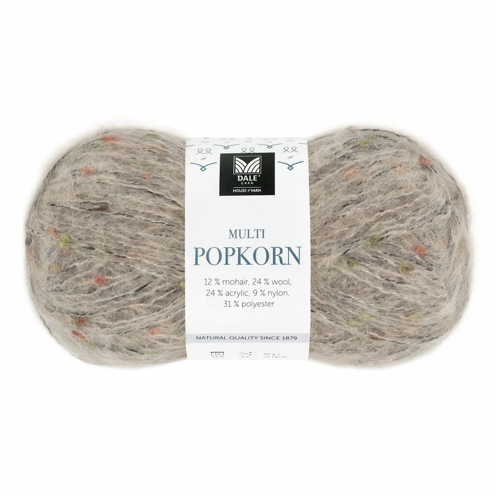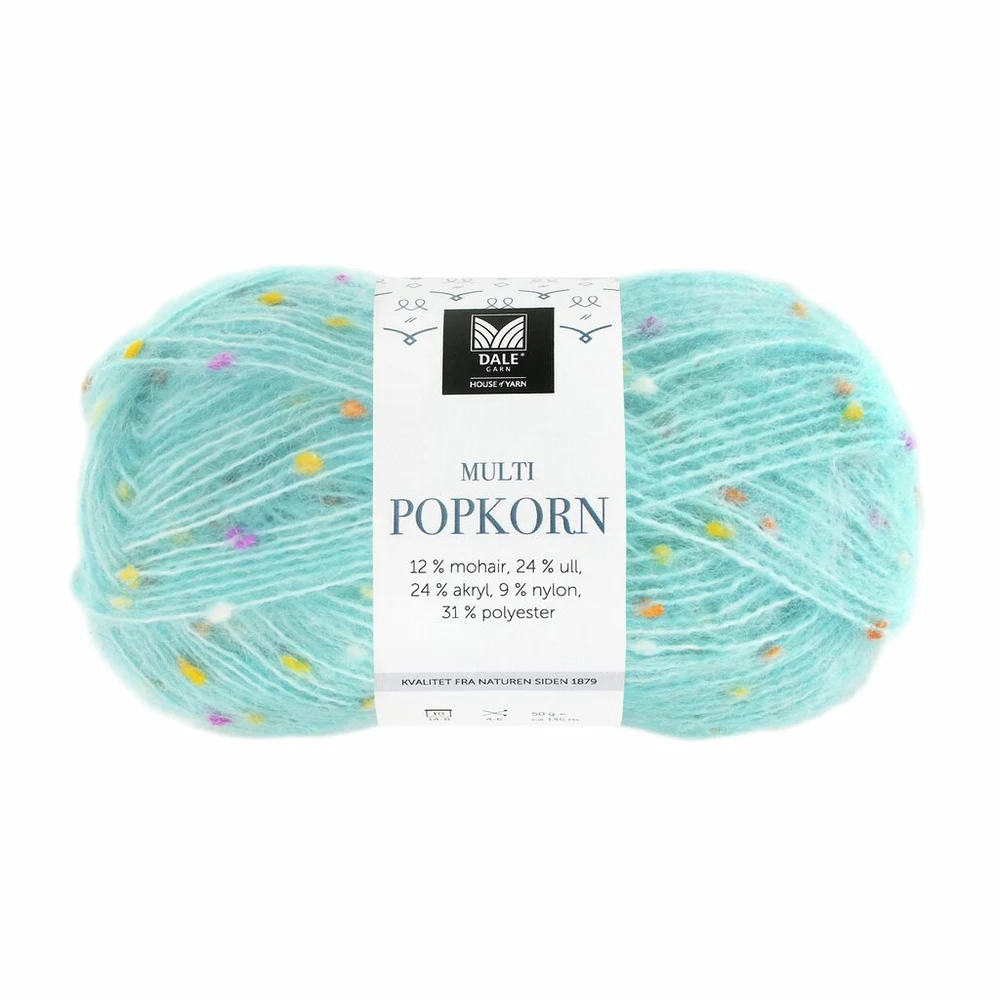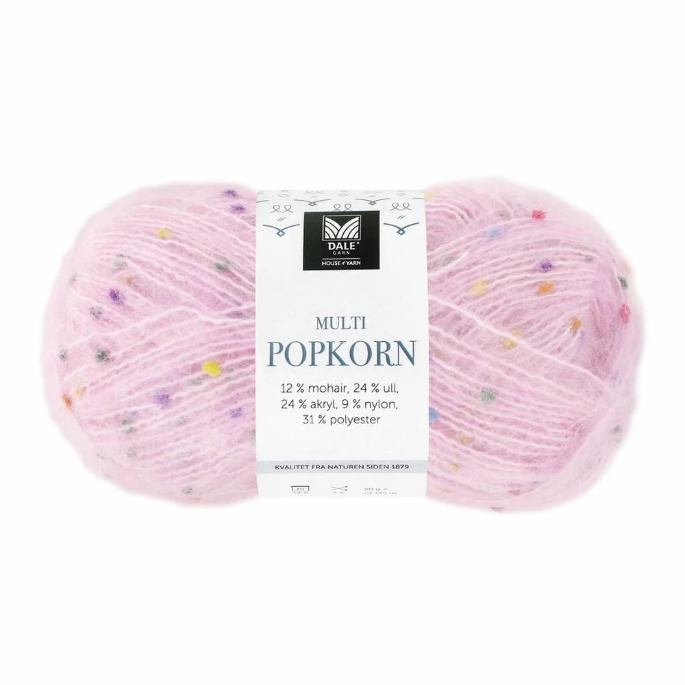 Dale Multi Popkorn er et spændende effektgarn fra Dale Garn med små, farverige knopper, der tilfører tekstur og liv til dine projekter. Det er blødt og smidigt og kan bruges alene eller kombineres med andre garner for at skabe unikke designs.