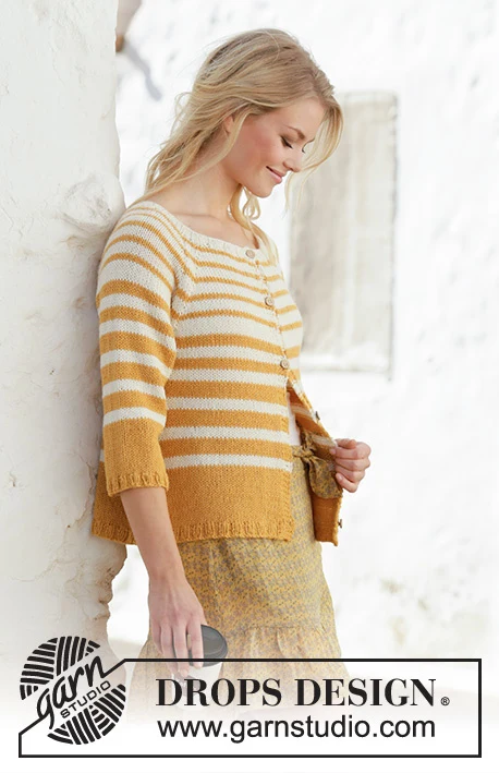 Strikket jakke med raglan og striber i 2 tråde DROPS Alpaca. Arbejdet strikkes ovenfra og ned. Størrelse S - XXXL.