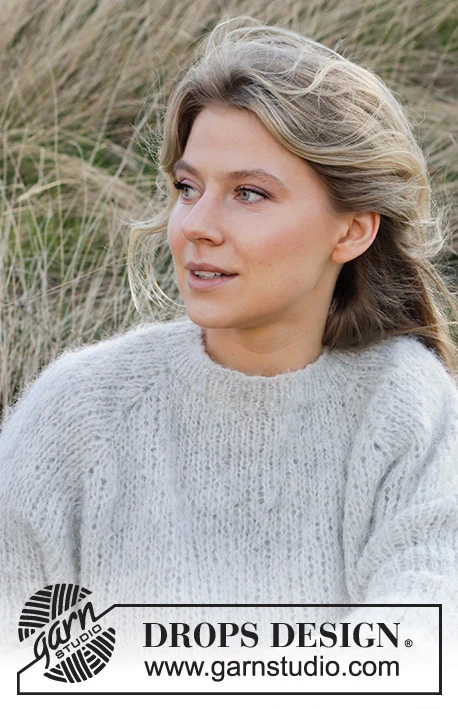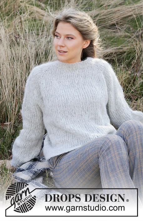 Strikket bluse i DROPS Melody. Arbejdet strikkes ovenfra og ned med raglan. Størrelse XS - XXL.