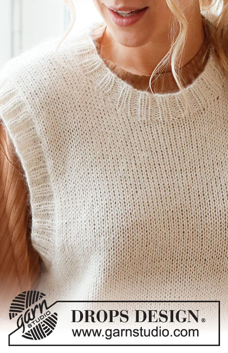 MATERIALER: DROPS ALPACA fra Garnstudio (tilhører garngruppe A) 200-200-250-250-300-300 g farve 100, natur Og brug: DROPS KID-SILK fra Garnstudio (tilhører garngruppe A) 75-75-100-100-125-125 g farve 01, natur
