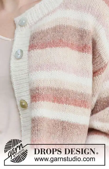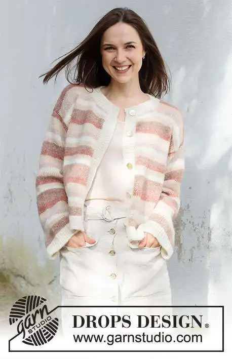 Strikket cardigan i DROPS Air. Arbejdet strikkes nedefra og op med striber og glatstrik. Størrelse S - XXXL.