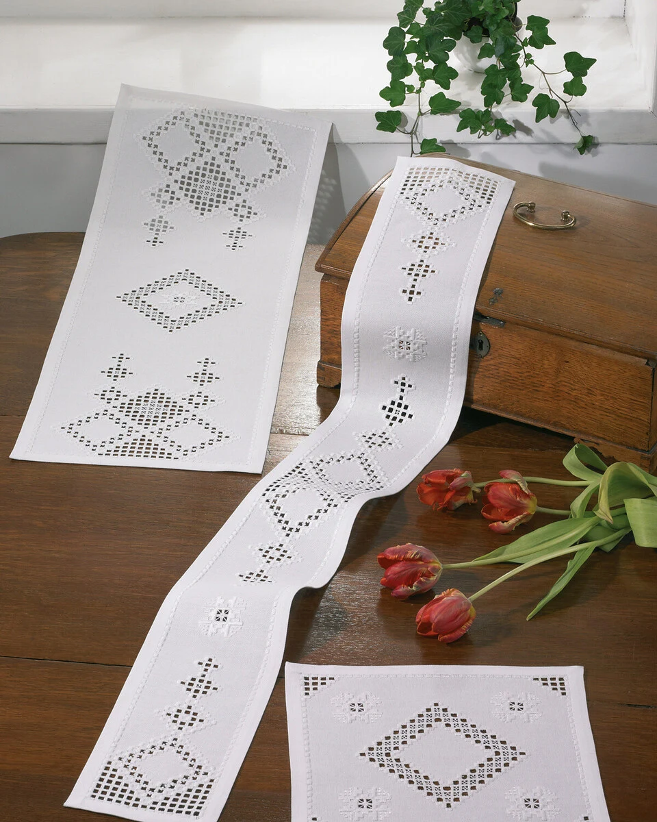 Broderikit Hardanger hvid 29 x 81 cm