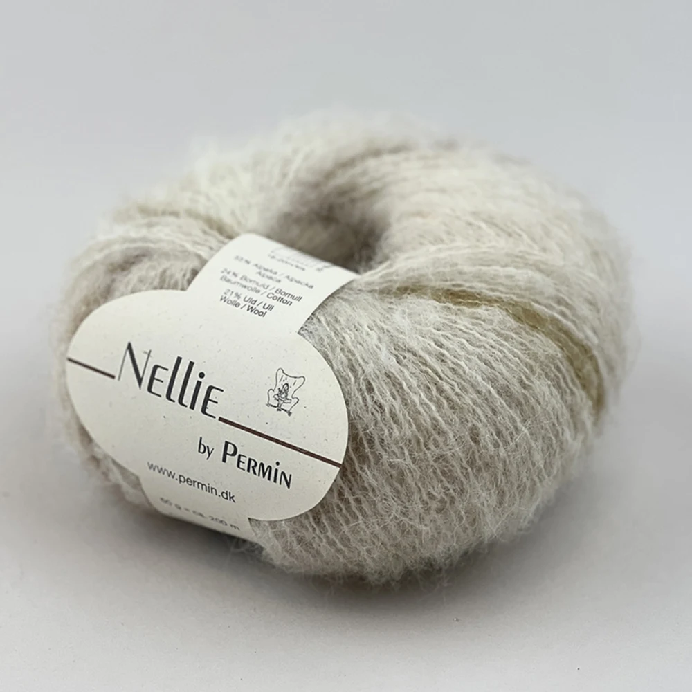 Permin Nellie er et eksklusivt og luftigt børstet alpacagarn, der kombinerer alpaca, bomuld og uld i en perfekt blanding. Garnet er utroligt blødt, let og temperaturregulerende, hvilket gør det velegnet til både sommer- og vinterstrik. Med sin fine stribeeffekt og delikate farveskala giver Nellie et unikt udtryk til ethvert projekt.