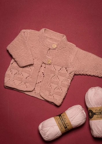 Trøje med hulmønster strikket i Mayflower Cotton 8/4 Økologisk