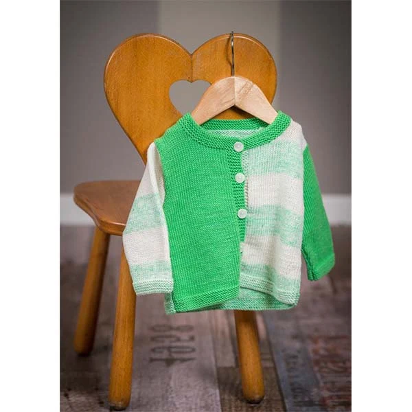 Fin strikket trøje med striber, strikket i det bløde, lækre uldgarn Merino The Collection fra Mayflower. Det er et eksklusivt garn, som er velegnet til selv de allermindste. Se de flotte farver her.
