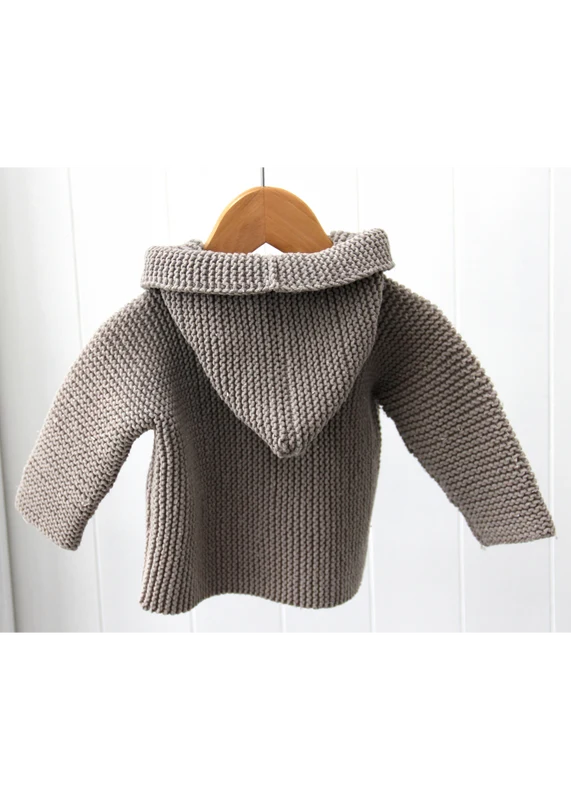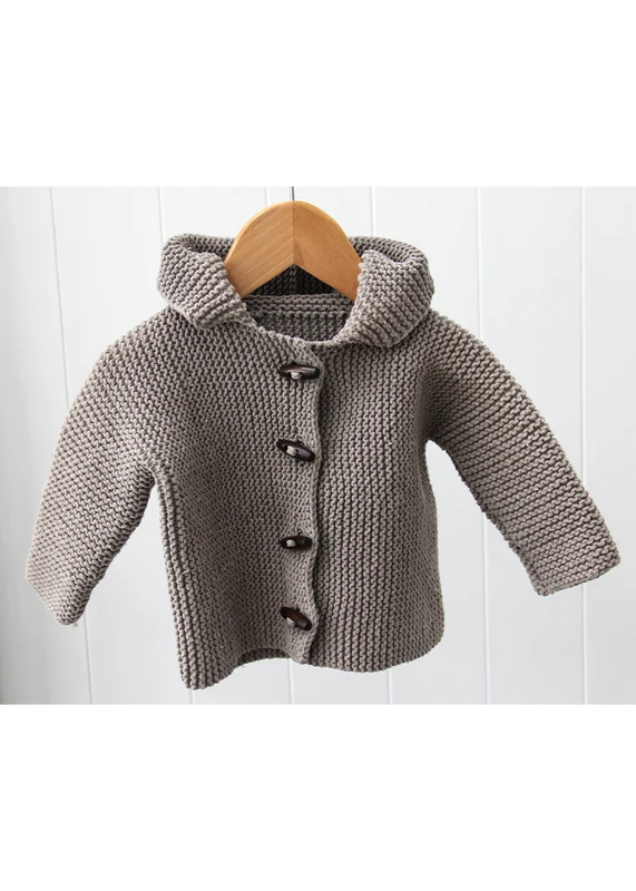 Hættejakke strikket i Cosy fra Go Handmade. Størrelse 3 - 6 måneder.