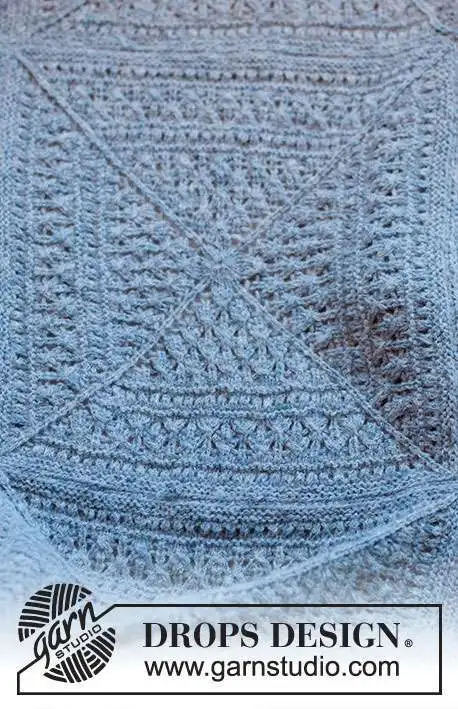 Strikket tæppe til baby i DROPS Sky. Arbejdet strikkes i ruder med hulmønster.