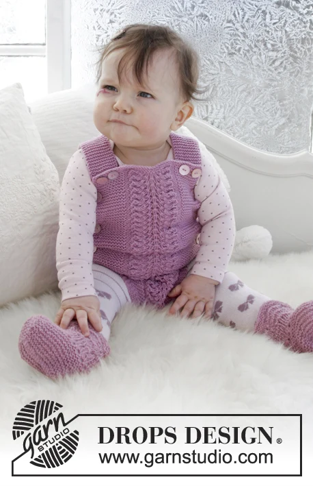 Sættet består af: Strikket body og tøfler med hulmønster og retstrik til baby. Størrelse præmatur - 4 år. Sættet er strikket i DROPS Baby Merino
