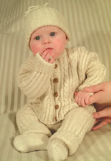 111 Aranstrikket jakke, bukse og lue