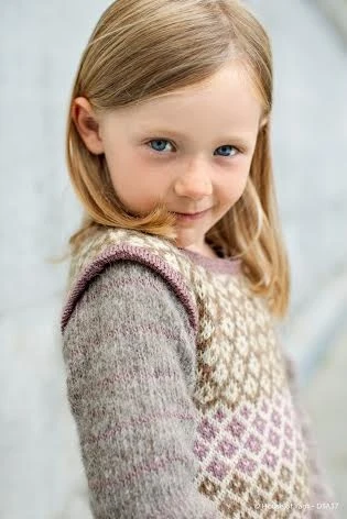 Forbruk: ca 3 nøster Faerytale, 4 nøster Sky, 2 nøster Soul og 1 nøste Air til str. 6 år