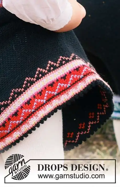 MATERIALER: DROPS BABY MERINO fra Garnstudio (tilhører garngruppe A) 150-150 (150-150-200) g farve 21, sort 50-50 (50-50-100) g farve 41, blomme 50-50 (50-50-50) g farve 08, cerise 50-50 (50-50-50) g farve 16, rød 50-50 (50-50-50) g farve 25, lavendel 50-50 (50-50-50) g farve 26, lys gammelrosa 50-50 (50-50-50) g farve 45, citron 50-50 (50-50-50) g farve 46, rose