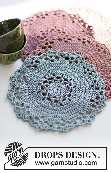 Hæklet dækkeserviet i DROPS Muskat. Tema: Jul.