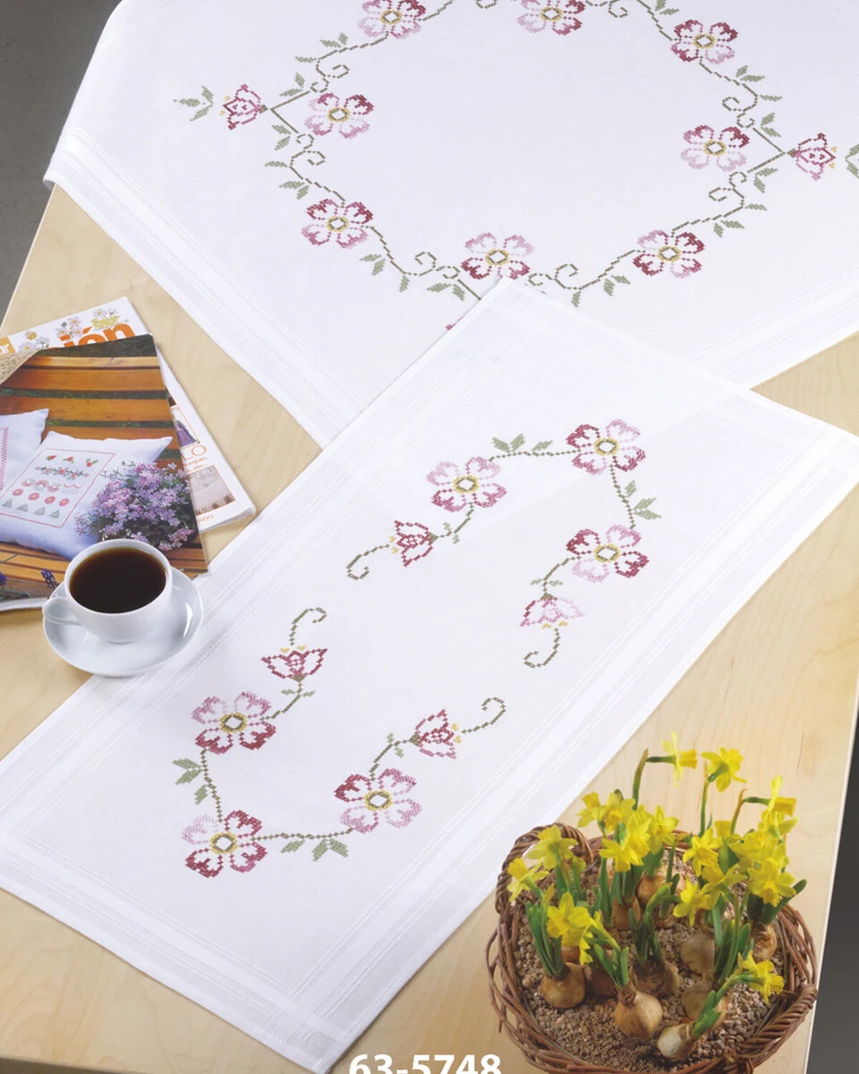 Dette broderisæt, "Rosa blomster xxx", er den perfekte kombination af enkelthed og skønhed. Uanset om du er nybegynder eller erfaren i brodering, vil du finde glæde og tilfredsstillelse i at skabe noget smukt og dekorativt til dit hjem. Giv dit bord et strejf af elegance med dette blomsterrige mesterværk.