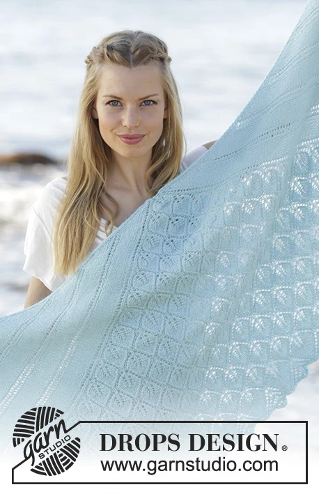 Strikket sjal med blade og hulmønster i DROPS Alpaca, strikket ovenfra og ned