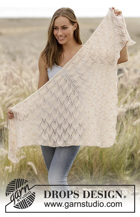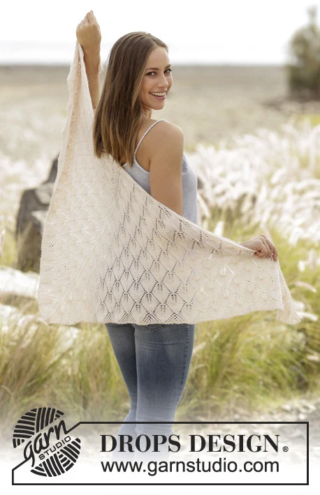 Strikket sjal med bladmønster i DROPS BabyAlpaca Silk, strikket ovenfra og ned.