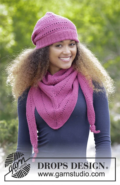 Sættet består af: Strikket hue og sjal med retstrik og hulmønster. Sættet er strikket i DROPS Baby Merino