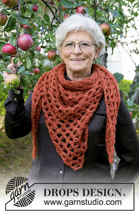 Hæklet sjal med kærlighedsknuder. Arbejdet er hæklet i DROPS Air