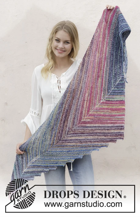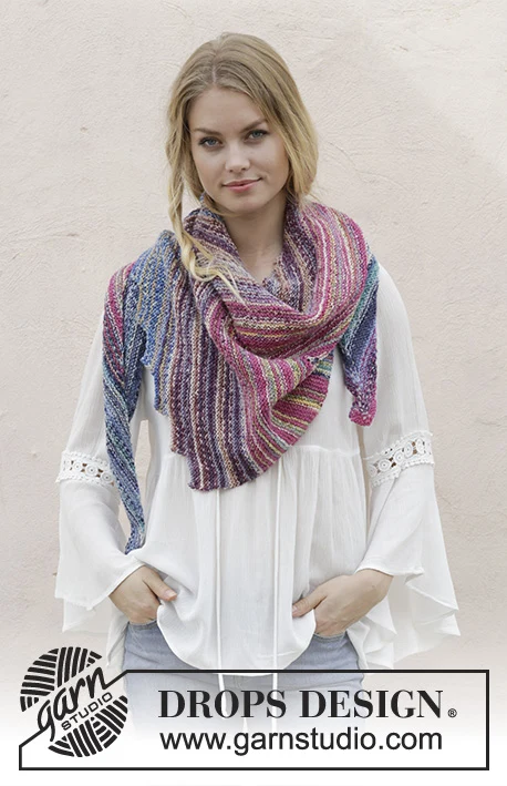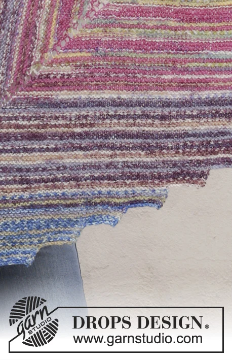 Strikket sjal med retstrik og striber. Arbejdet er strikket i DROPS Fabel.