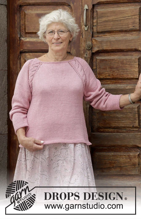 Bluse med hulmønster, raglan og A-facon, strikket rundt ovenfra og ned. Størrelse S - XXXL. Arbejdet er strikket i DROPS Muskat.