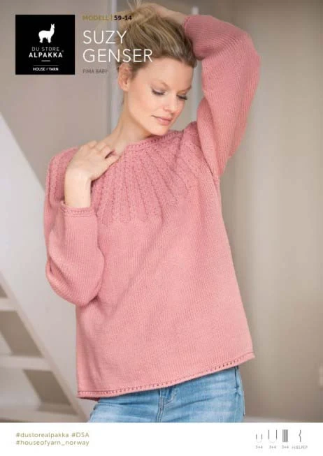 22 m glatstrik på p nr 4 = 10 cm. 24 m flettestrikk på p nr 4 = 10 cm.
