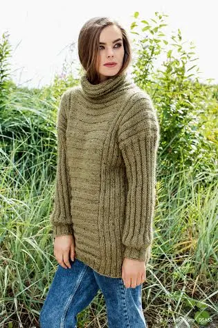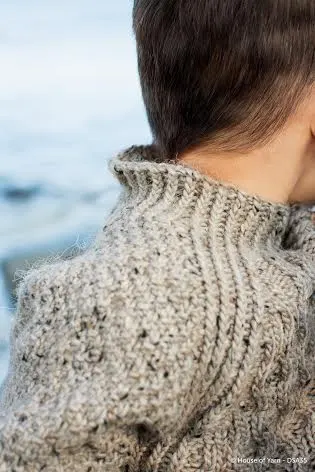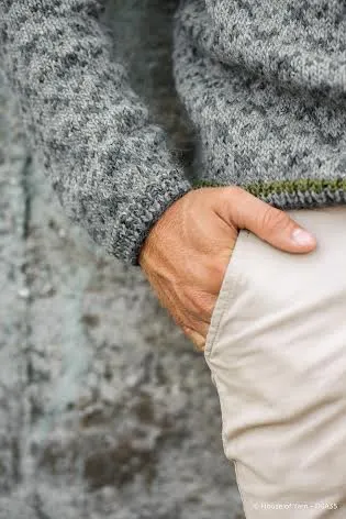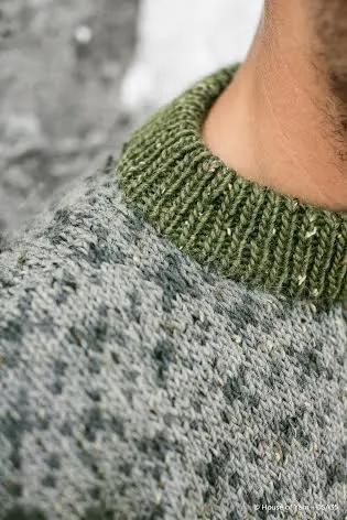 Pind: Rundpinde og Strømpepinde str. 4 og 5. Lille rundpind str. 4 til halsen.