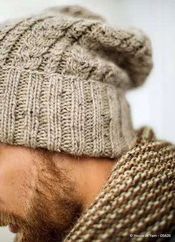 Hue: Lille rundpind og Strømpepinde str. 6 samt hæklenål 4,5 mm