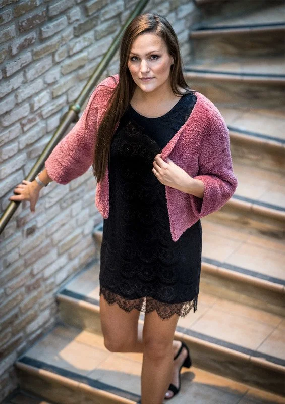 Så er tilbehøret til festkjolen klar. Var med på noderne og ifør dig denne smukke lækre flotte korte jakke der indbyder fest. Strikket så det ligner pels, men godt for dyrene som vi tager hånd om. Denne flotte jakke er så nem at strikke, og du kan slet ikke se forskellen på, om det er syet eller strikket.