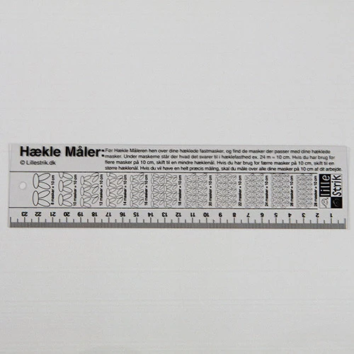 Praktisk hæklemåler der kan benyttes til at bestemme hæklefastheden