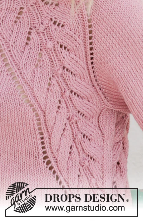 Strikket bluse med raglan i DROPS Merino Extra Fine. Arbejdet strikkes oppefra og ned med hulmønster. Størrelse S - XXXL.