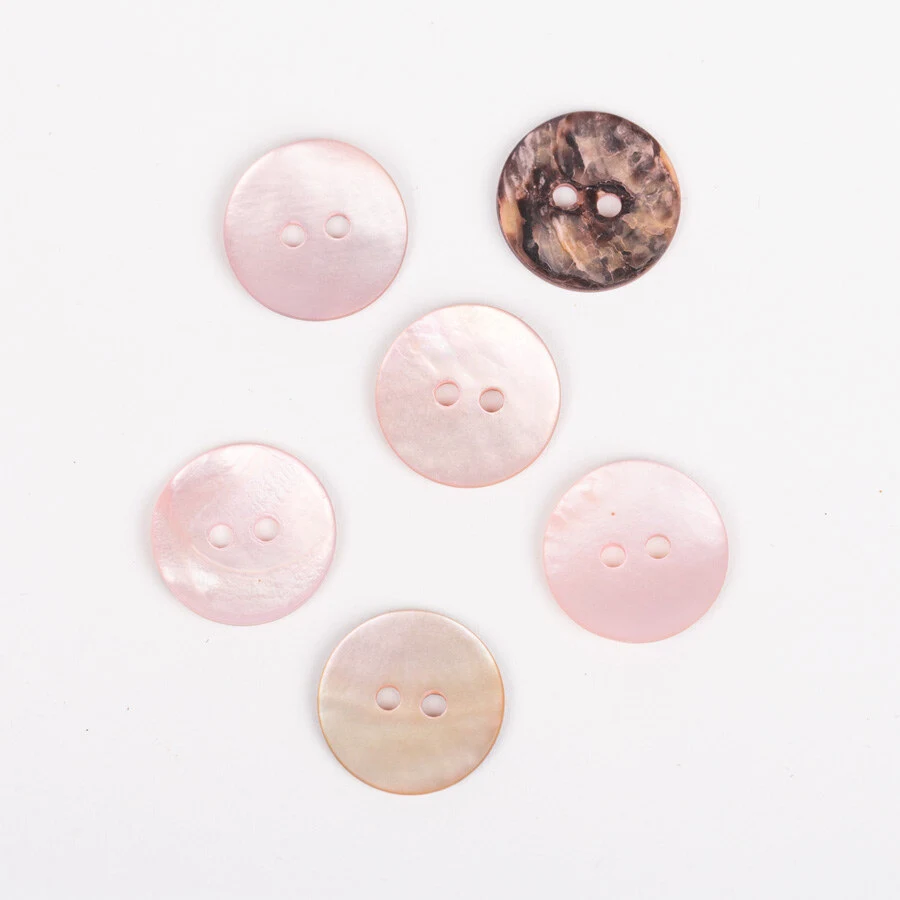 Varm og rund knap i en lys rosa, som giver et feminint udseende og derfor er en perfekt knap til pigetøj. Den er fra DROPS, som forstår at fremstille nogle elegante knapper som denne, der er lavet i perlemor. Det giver en holdbar knap, der kan vaskes mange gange uden at tage skade. Med sine 15 mm er det en diskret knap, som ikke fylder for meget. Du kan købe den i løssalg, så du ikke skal købe en pakke, hvis du nu kun skal bruge en enkelt eller to. Den har to huller, så den let kan syes fast på en striktrøje eller lignende projekter.