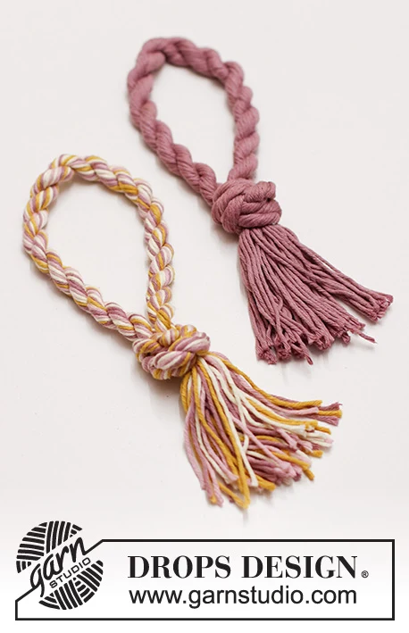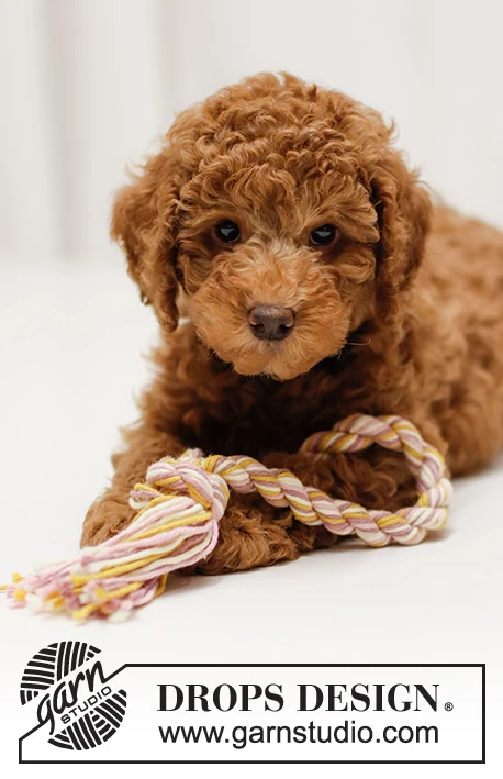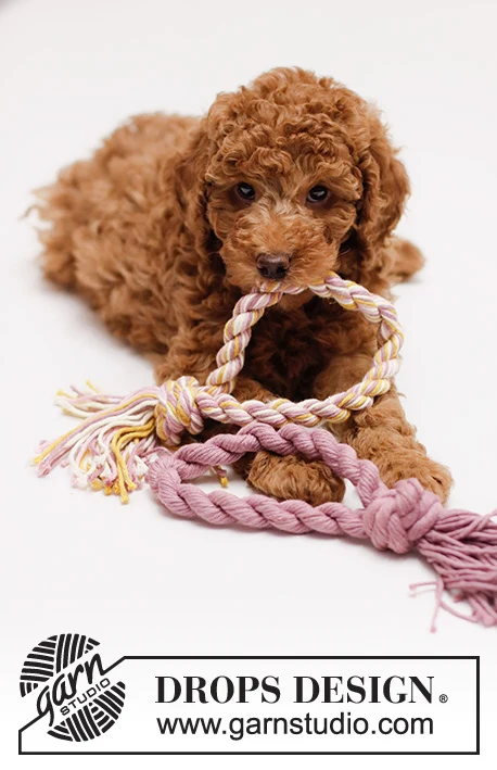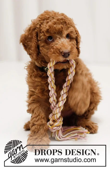 Legetøj til hund formet som en ring i DROPS Paris. Arbejdet tvindes og bindes sammen til en ring.