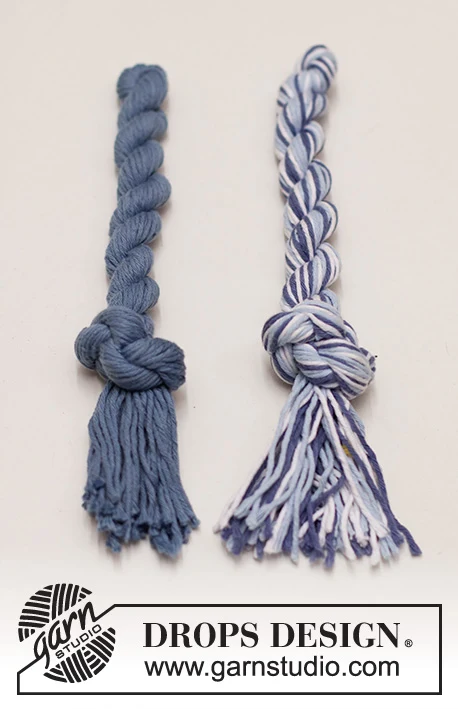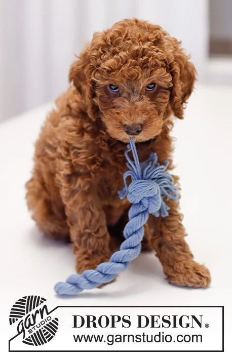 Legetøj til hund i DROPS Paris. Arbejdet tvindes og bindes.