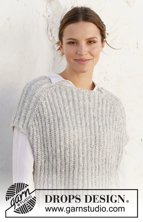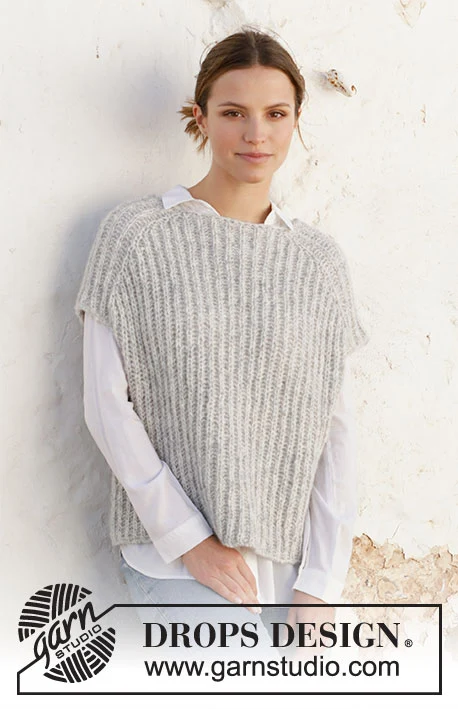 Strikket vest i DROPS Air. Arbejdet strikkes ovenfra og ned med patentmønster. Størrelse XS - XXL.