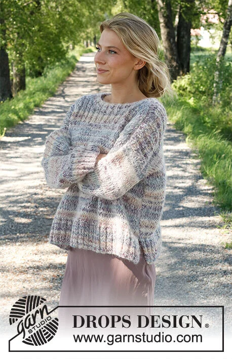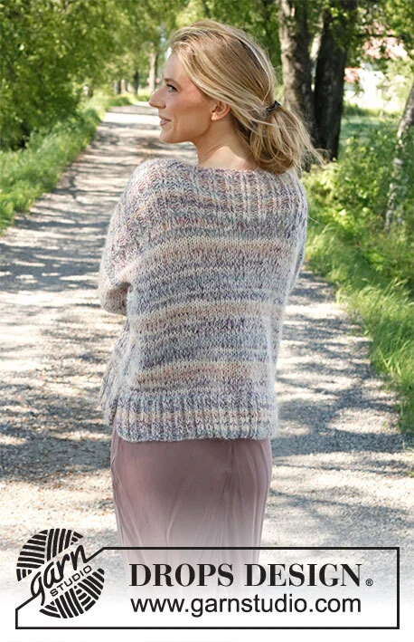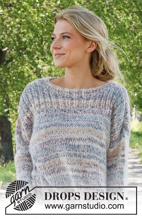 Strikket bluse i DROPS Fabel og DROPS Brushed Alpaca Silk. Arbejdet strikkes nedenfra og op med kanter i rib. Størrelse XS - XXL.