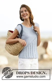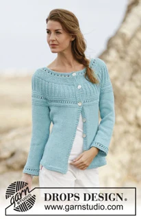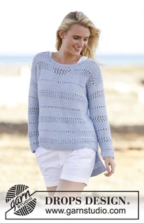 Skønne sokker, tøfler, tørklæder og sjaler i lette bløde materialer. Bluser og trøjer med flotte struktur- og hulmønstre, diagonale liner, runde bærestykker, sjalskraver og søde små mønsterborter. Bliv inspireret af himlens og havets alle blå og grønne nuancer.