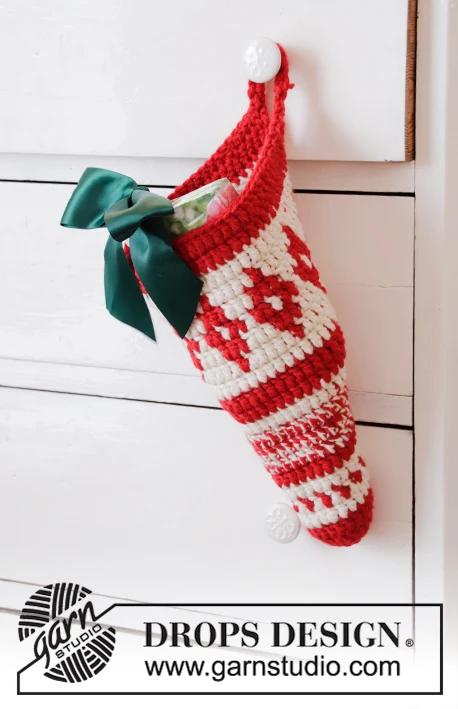 Hæklet kræmmerhus i 2 tråde DROPS Nepal. Arbejdet hækles rundt med mønster. Tema: Jul.