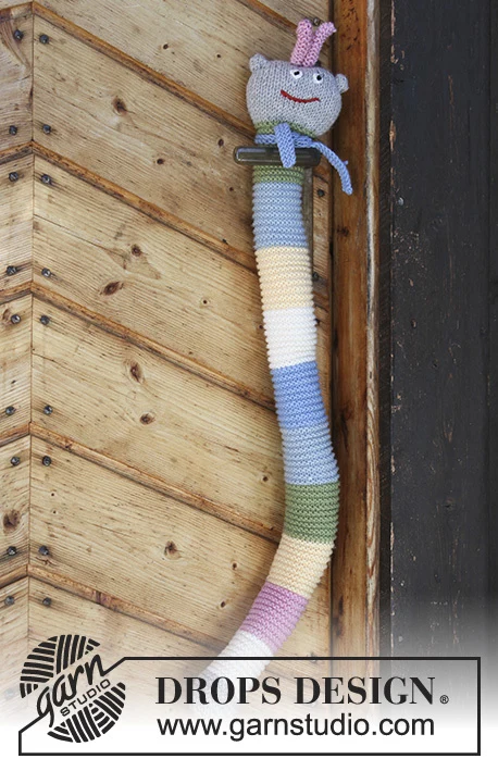 Strikket legetøj: Kålorm i retstrik med striber. Arbejdet er strikket i DROPS Merino Extra Fine.
