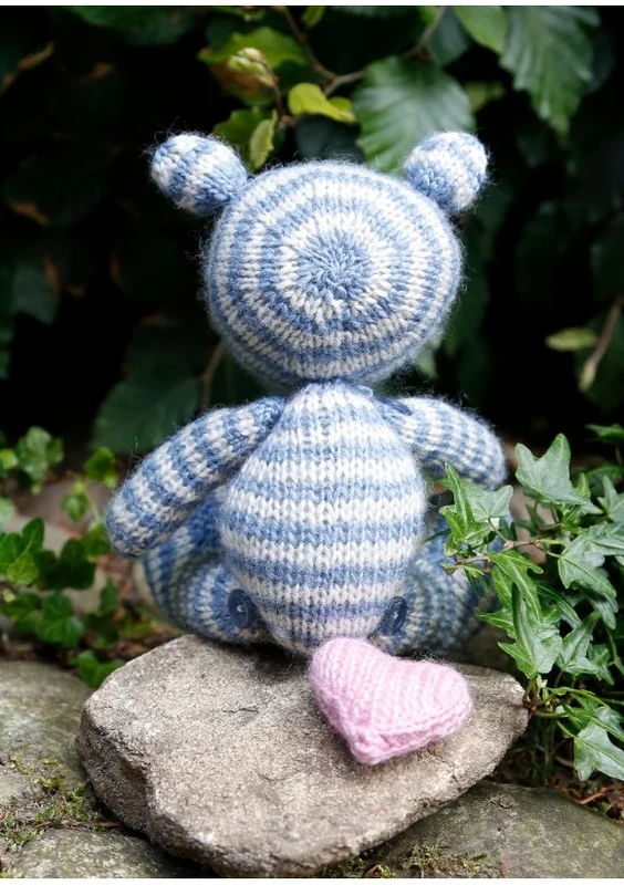 Strikket bamse med striber i Go Handmade Vintage.