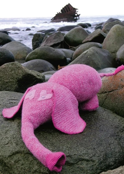Lengde uten hale og snabel ca 50 cm. Høyde ca 20 cm - Garn: Tynn Alpakka, 100% alpakka