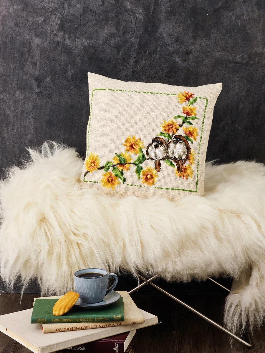 Broderikit Ranunkel & Gråspurve 40 x 40 cm