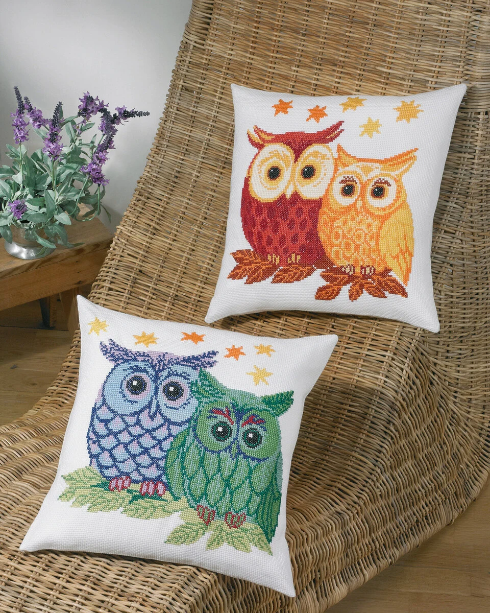 Broderikit Ugler blå/grøn 42x42cm