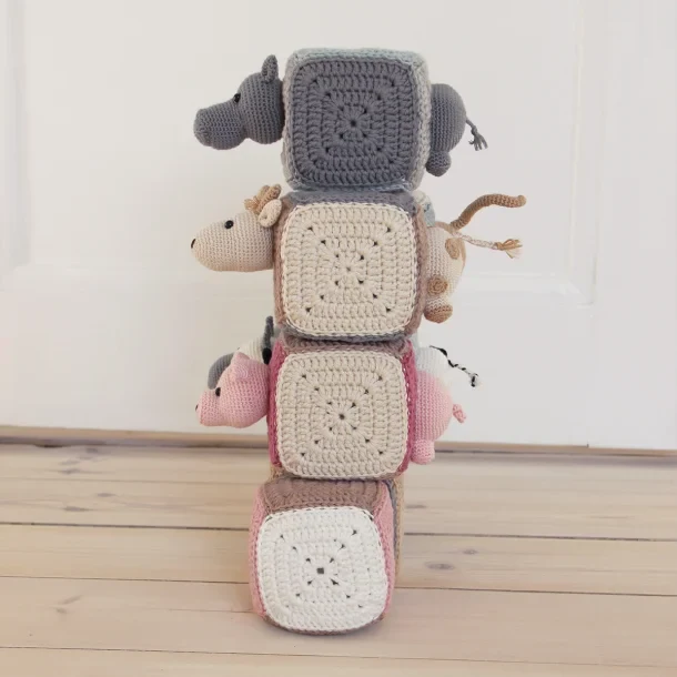 Hæklede stabelterninger med dyr i Go Handmade Soft Bamboo Double og Go Handmade Soft Bamboo Fine.