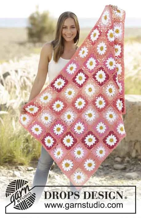 Hæklet Tæppe med Firkanter i DROPS Paris.