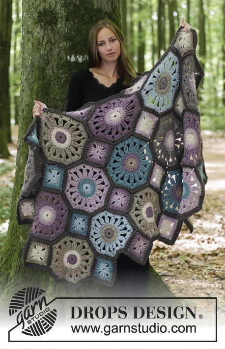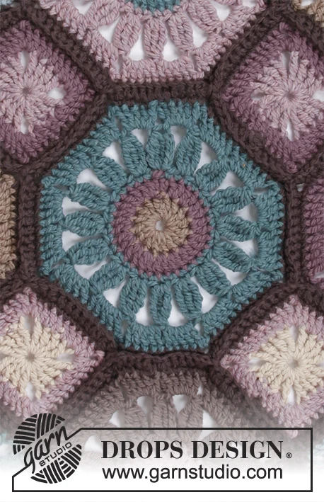 Hæklet tæppe med ottekantede og firkantede ruder. Arbejdet er hæklet i DROPS Andes.