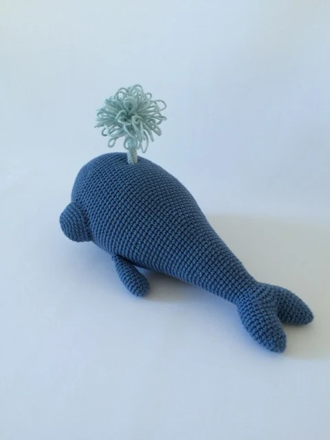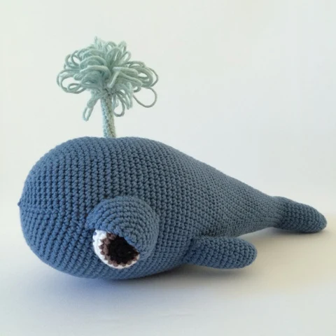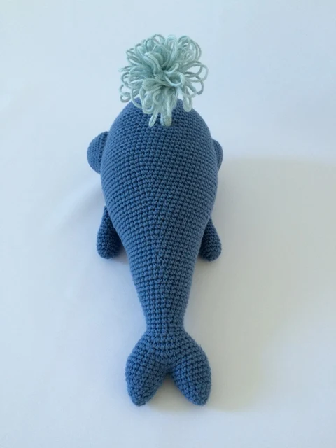 Produktet: Detaljeret hækleopskrift på hvalen Wilfred. Hvalen Wilfred bliver ca. 28 cm lang.